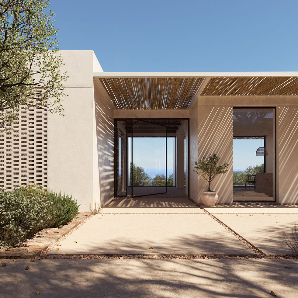 Located in the serene area of Kentroma, Ojun stands as a spectacular contemporary residence in a truly dramatic setting. Perched on a hillside, this home offers unparalleled views and a magnificent panorama of the sea, along with the charming bays lining Corfu's coastline. Set within an elongated plot, graced by the presence of ancient olive and cypress trees, the main residence and its independent guest house are easily accessible through a prominent main gate and a private road. The unique shape of the plot has been thoughtfully leveraged to create fully landscaped external areas, featuring cutting-edge gardens, expansive paved seating zones, and an external kitchen and dining area. The crowning jewel of this estate is undoubtedly the stunning private pool strategically positioned at the forefront of the land, making the most of the breathtaking panoramic views.
